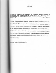 Anna, Yenni (2007) Perkembangan Alat Ukur Kreativitas. (Studi Pada Mahasiswa Teknik Jurusan Arsitektur). Skripsi thesis, Universitas Tarumanagara.