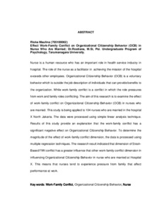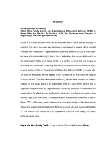 Maulina, Riska (2014) Pengaruh Konflik Kerja-Keluarga Terhadap Perilaku Kewargaan Organisasional Pada Perawat Yang Sudah Berkeluarga (Studi Pada Perawat RS X di Jakarta). Skripsi thesis, Universitas Tarumanagara.