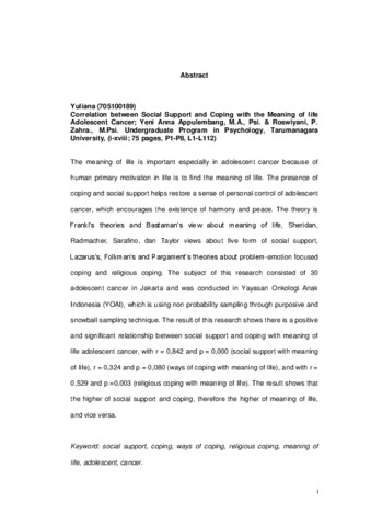 Yuliana, Yuliana (2014) Hubungan Antara Dukungan Sosial Dan Coping Terhadap Makna Hidup Remaja Penyandang Kanker. Skripsi thesis, Universitas Tarumanagara.