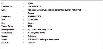 Sugara, Yudi (2010) Penerapan wakaf uang dalam perbankan syariah. Masters thesis, Universitas Tarumanagara.