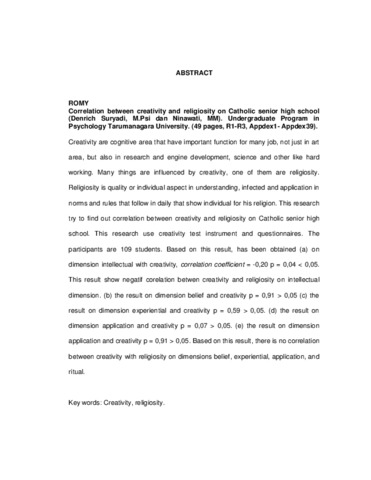 Romy, Romy (2008) Hubungan Kreativitas Dengan Religiusitas Pada Siswa Sekolah Menengah Umum Katolik. Skripsi thesis, Universitas Tarumanagara.