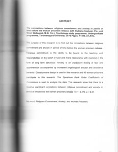 | Uncontrolled Keywords: | Religious Commitment, Anxiety, and Woman Prisoners. |