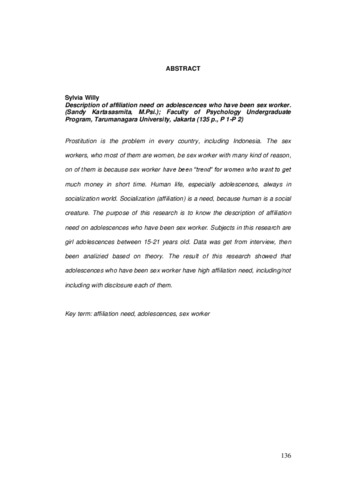 | Uncontrolled Keywords: | affiliation need, adolescences, sex worker |