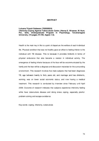 Setiawan, Triputri (2009) Coping Inferioritas Penderita Tuberkolosis (TBC). Skripsi thesis, Universitas Tarumanagara.