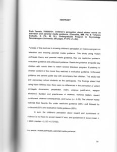 Pamela, Ruth (2010) Persepsi Anak Tentang Film Kekerasan Di Televise Dan Bimbingan Media Orangtua. Skripsi thesis, Universitas Tarumanagara.