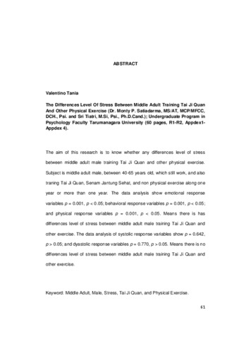 Tujuan dari penelitian ini adalah untuk mengetahui perbedaan tingkat stress antara pria dewasa madya yang mengikuti latihan Tai Ji Quan dengan yang mengikuti olah tubuh lain. Subjek dalam penelitian ini adalah pria dewasa madya usia 40-65 tahun, yang masih bekerja, dan juga berlatih Tai Ji Quan, Senam Jantung Sehat, dan yang tidak melakukan olah tubuh selama satu tahun atau lebih dari satu tahun. Hasil analisis menunjukkan pada variabel respon emosional p = 0.001, p < 0.05; variabel respon prilaku p = 0.001, p < 0.05; variabel respon fisik p = 0.001, p < 0.05. Hal ini berarti ada perbedaan signifikan pada tingkat stress pria dewasa madya yang berlatih Tai Ji Quan dengan yang berlatih olah tubuh lain. Hasil analisis pada variabel systolic menunjukan p = 0.642, p > 0.05; dan variabel dyastolic p = 0.770, p > 0.05. Hal ini berarti tidak ada perbedaan signifikan antara kelompok Tai Ji Quan, kelompok Senam Jantung Sehat, dan kelompok kontrol berdasarkan total skor tekanan darah