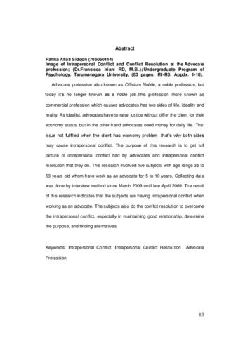 Sidqon, Rafika Afiati (2009) Gambaran Konflik Intrapersonal Dan Resolusi Konflik Pada Profesi Advokat. Skripsi thesis, Universitas Tarumanagara.