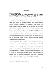 | Uncontrolled Keywords: | Kecemasan, Keturunan, perempuan suku Batak. |