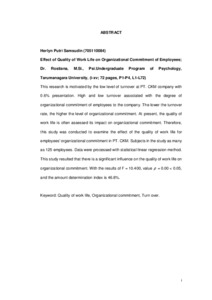 Putri Samsudin, Herlyn (2015) Pengaruh Kualitas Kehidupan Kerja Terhadap Komitmen Organisasi Karyawan. Skripsi thesis, Universitas Tarumanagara.
