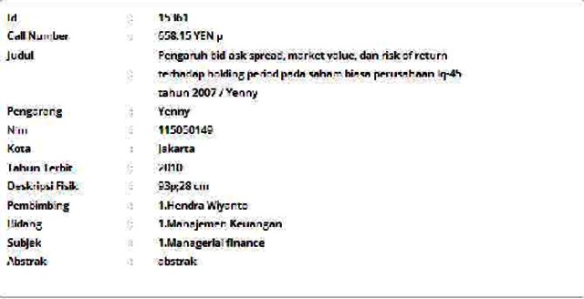Yenny, Yenny (2010) Pengaruh Bid-Ask Spread, Market Value, dan Risk of Return terhadap Holding Period pada Saham Biasa Perusahaan LQ-45 Tahun 2007. Skripsi thesis, Universitas Tarumanagara.