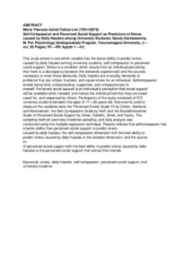"This study aimed to see which variable has the better ability to predict stress caused by daily hassles among university students; self-compassion or perceived social support. Stress is a condition which results from an individual perceiving that there is a discrepancy between the demands experienced and the sources
