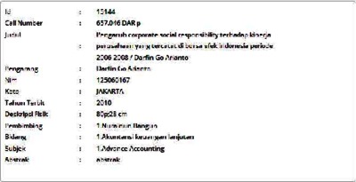 Arianto, Darfin Go (2010) Pengaruh corporate social responsibility terhadap kinerja perusahaan yang tercatat di bursa efek indonesia periode 2006-2008. Skripsi thesis, Universitas Tarumanagara.