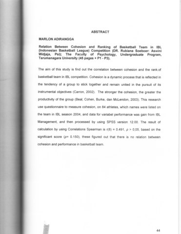 Adirangga, Marlon (2005) Hubungan kohesi dan peringkat tim bola basket yang mengikuti kompetensi IBL (Indonesia Basketball League). Skripsi thesis, universitas Tarumanagara.