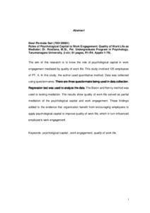 Permata Sari, Dewi (2016) Peranan modal psikologis terhadap keterikatan kerja: kualitas kehidupan kerja sebagai mediator. Skripsi thesis, Universitas Tarumanagara.