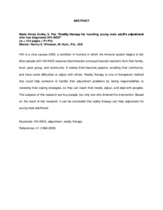 Hinda Arnita, Made (2010) Reality therapy terhadap penyesuaian diri laki-laki dewasa muda berstatuskan HIV/AIDS. Masters thesis, Universitas Tarumanagara.
