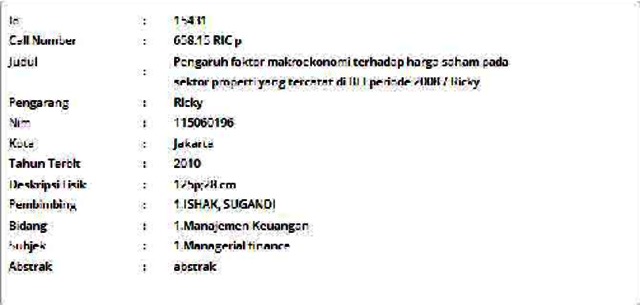 Ricky, Ricky (2010) Pengaruh faktor makroekonomi terhadap harga saham pada sektor properti yang tercatat di BEI periode 2008 / Ricky. Skripsi thesis, Universitas Tarumanagara.