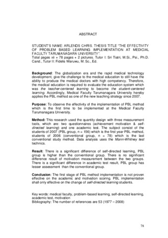 Conclusion: The first stage of PBL method implementation, there is not differences in self-directed learning and motivation. The Academic test shows that learning result form student with PBL lesser than student with conventional.