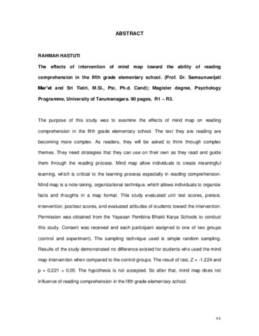 Astuti, Rahmah (2009) Pengaruh Intervensi Terhadap Pemahaman Bacaan Melalui Mind Map. Masters thesis, Universitas Tarumanagara.