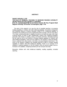 | Uncontrolled Keywords: | children with mild intellectual disability, reading capability, remedial teaching. |