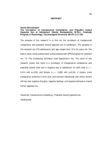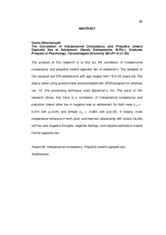 Oktoriansyah, Genta (2007) Hubungan antara kompotensi interpersonal dan prasangka terhadap lawan jenis pada remaja. Skripsi thesis, Universitas Tarumanagara.