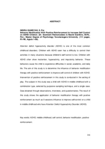 | Uncontrolled Keywords: | ADHD, kanak-kanak pertengahan, kontrol diri, modifikasi perilaku, positive reinforcement. |