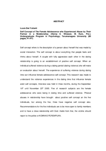 Yulianti, Louis Dwi (2006) Konsep diri remaja akhir perempuan yang mengalami kekerasan dalam pacaran. Skripsi thesis, Universitas Tarumanagara.