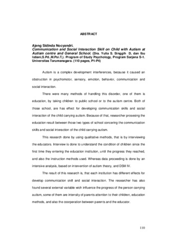 The result of this research is, that each institution has different effects for develop communication skill and social interaction. The researcher has also found several external variable wich influence the progress of the person carrying autism, some of them are intensity of parents attention to their children, education methods, and also the coorperation between parents and the educator.
