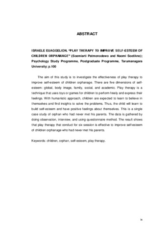 Euaggelion, Israele (2011) Efektivitas terapi bermain untuk meningkatkan self-esteem anak Panti Asuhan. Masters thesis, Universitas Tarumanagara.