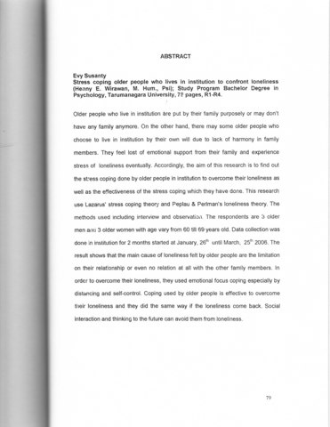 Susanty, Evy (2006) Stress coping individu lanjut usia dipanti wredha dalam menghadapi loneliness. Skripsi thesis, Universitas Tarumanagara.