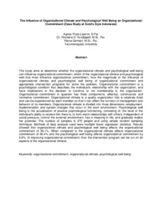 Pryta Liyanto, Agnes (2012) Pengaruh iklim organisasi dan psychological well-being terhadap komitmen organisasi di Gold’s Gym Indonesia. Masters thesis, Universitas Tarumanagara.