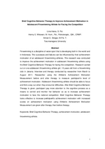 Finswimming is a discipline of water sport that is developing both in the world and in Indonesia. The successes and failures can be influenced by their achievement motivation of an adolescent finswimming athletes. This research was conducted to improve the achievement motivation in adolescent finswimming athlete using the Brief Cognitive Behavior Therapy for facing the competition. Research carried out on one adolescent finswimming athlete girl, 15 years old from a finswimming club in Jakarta. Interview and therapy conducted by researcher from March to August 2011. Researcher using the Athlete’s Achievement Motivation Measurement before and after therapy to measure participant’s level of achievement motivation. Adolescent finswimming athlete should be able to focus and find a way out when they encounter difficulties. After Brief Cognitive Behavior Therapy is given, participant pay more attention to the cognitive process as a means to control and monitor her behavior so as to increase achievement motivation to face the national competition. Brief Cognitive Behavior Therapy looks effective to increase participant’s achievement motivation with increased scores on achievement motivation using Athlete’s Achievement Motivation Measurement are given after therapy than before therapy.