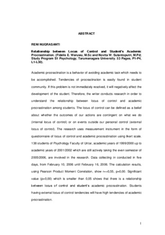 Nugrasanti, Reni (2006) Hubungan antara locus of control dan prokrastinasi akademik mahasiswa. Skripsi thesis, Universitas Tarumanagara.