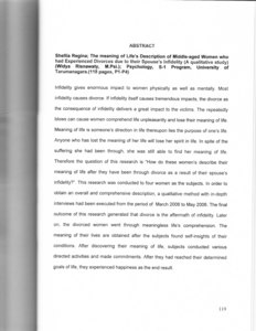 Regina, Shellia (2006) Gambaran makna hidup perempuan usia dewasa madya yang mengalami perceraian akibat perselingkuhan suami. Sebuah studi kualitatif. Skripsi thesis, Universitas Tarumanagara.