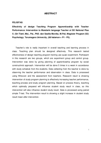 Janaipry Kaban, Felisitas (2011) Efektivitas apprenticeship (pemagangan) perancangan program pengajaran terhadap kinerja guru: intervensi terhadap guru bahasa Mandarin di SD Nasional Plus X. Masters thesis, Universitas Tarumanagara.