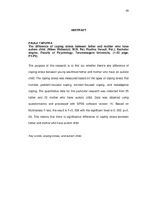 Yaputra, Paula (2006) Perbedaan coping stress antara ayah dan ibu dewasa muda yang memiliki anak autis. Skripsi thesis, Universitas Tarumanagara.