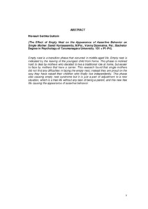 Gultom, Risnauli S. (2006) Dampak fase sarang hampa terhadap munculnya perilaku asertif pada ibu dengan status orangtua tunggal. Skripsi thesis, Universitas Tarumanagara.