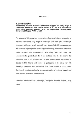 Kartikasari, Dian (2006) Hubungan antara persepsi terhadap dukungan Ibu dan citra tubuh pada remaja putri overweight. Skripsi thesis, Universitas Tarumanagara.