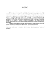 The results of the research concluded that performance is influenced by the interaction between interpersonal communication effectiveness and performed motivation.