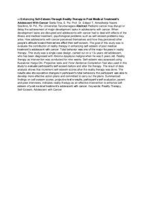 | Uncontrolled Keywords: | Reality Therapy, Self-Esteem, Adolescent with Cancer |