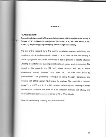 Erwin, Hilarion (2007) Hubungan self efficacy dengan mencontek pada remaja madya. Studi pada sekolah “X” di Jakarta Barat. Skripsi thesis, Universitas Tarumanagara.