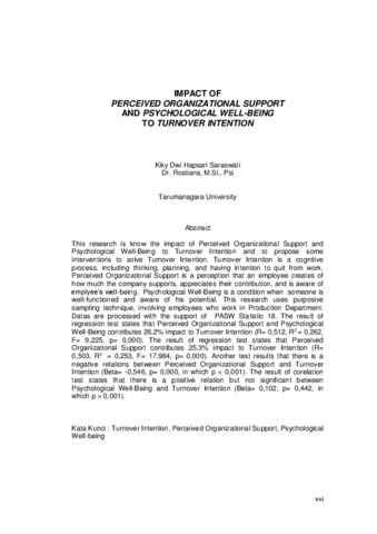 Saraswati, Kiky Dwi Hapsari (2013) Pengaruh perceived organization support dan psychological well-being terhadap turnover intention. Masters thesis, Universitas Tarumanagara.