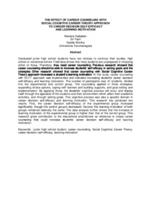 Graduated junior high school students have two choices to continue their studies, high school or vocational school. Field data shows that most students are unprepared in choosing either of those. Therefore, they need career counseling. Previous research showed that career counseling should be able to increase students’ self-efficacy in setting goals and the strategies. Other research showed that career counseling with Social Cognitive Career Theory approach increased a student’s learning motivation. In this study, career counseling with SCCT approach was implemented and indicated increasing students’ career decision self-efficacy and learning motivation. The number of participants was 31 students, divided into the experimental and control group. The counseling applied in three strategies: expanding choice options, coping with barriers and building supports, and goal setting and implementation. By applying those, the students’ cognitive process will occur and display itself through the appraisal of the students and their environment which affect their academic activities, and through setting goals. This cognitive process was also a specific domain in career decision self-efficacy and learning motivation. This research has produced two results. First, the career decision self-efficacy of the experimental group increased significantly, though the control group’s decreased. Second, the learning motivation of both groups remained relatively the same. The data analysis further shows that the increase of learning motivation of the experimental group is higher than that of the control group. This research gives contribution to the educational practitioners as reference to create career counseling that could increase students’ career decision self-efficacy and learning motivation.