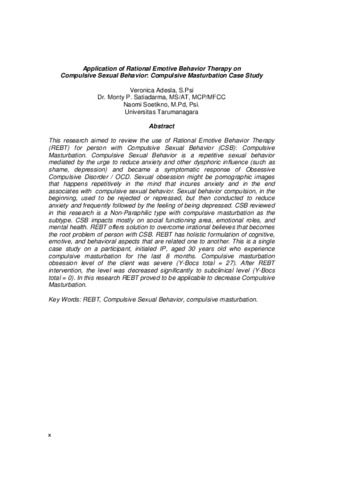 Adesia, Veronica (2013) Penerapan rational emotive behavior therapy pada compulsive sexual behavior. Studi kasus masturbasi kompulsif. Masters thesis, Universitas Tarumanagara.