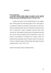 A., Fitria S. (2007) Hubungan antara dukungan keluarga dan kecemasan pada wanita hamil anak pertama. Skripsi thesis, Universitas Tarumanagara.