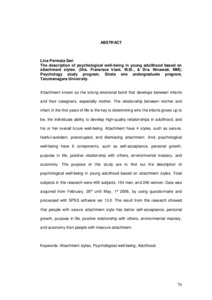 Sari, Lina Permata (2006) Gambaran kesejahteraan psikologis pada dewasa muda ditinjau dari pola attachment. Skripsi thesis, Universitas Tarumanagara.