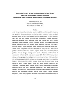 Susilo, Fransiska (2013) Menurunkan perilaku berjalan dan meningkatkan perilaku menulis pada anak dengan fingsi inteligensi borderline (Studi dengan teknik differential reinforcement of incompatible behavior). Masters thesis, Universitas Tarumanagara.