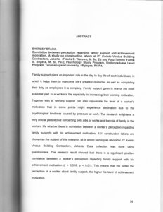 Family support plays an important role in the day to day life of each individuals, in which it helps them to overcome Iife's greatest obstacles as well as completingtheir duty as employees in a company. Family support given is one of the most essential part in a worker's life especially in increasing their working motivation. Together with it, working support can also rejuvenate the level of a worker's motivation that in some points might experience declination due to the psychological tiredness caused by pressure at work. The research enlightens a very crucial perspective concerning both jobs or works and the role of family in the workers life whether there is correlation between a worker's perception regarding family supports with his achievement motivation. 151 construction labors are chosen as the subject of this research, all of whom working as labors for PT Kwinto Viratus Building Contractors, Jakarta. Data collection was done using questionnaire. The research result showed that there is a significant positive correlation between a worker's perception regarding family support with his achievement motivation (r = 0,516, p < 0,01). This means that the better the perception of a worker about family support, the higher his level of achievement motivation.