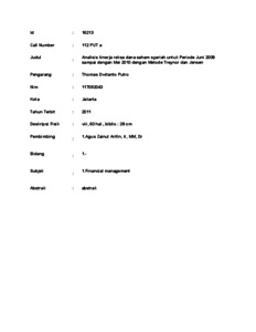 Dwitanto Putro, Thomas (2011) Analisis kinerja reksa dana saham syariah untuk Periode Juni 2008 sampai dengan Mei 2010 dengan Metode Treynor dan Jensen. Masters thesis, UNIVERSITAS TARUMANAGARA.