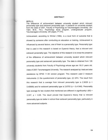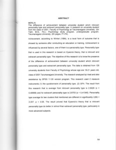 Flavor, Merlin (2002) Perbedaan prestasi belajar antara mahasiswa yang bertipe kepribadian introvert dan bertipe keperibadian ekstrovert. Skripsi thesis, Universitas Tarumanagara.