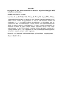 | Uncontrolled Keywords: | POS, perceived organizational support, job satisfaction, turnover intention. |